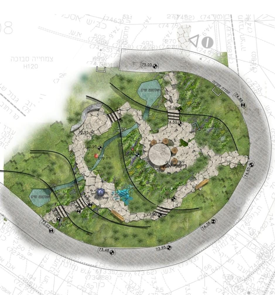 לשלושה עצי הזית המרכזיים והבולטים יתווספו עצים וצמחיה בשלושה מפלסים גליים, עם שביל אבני דריכה, פינות ישיבה, אלמנט מים אקולוגי, ואובייקטים פיסוליים".