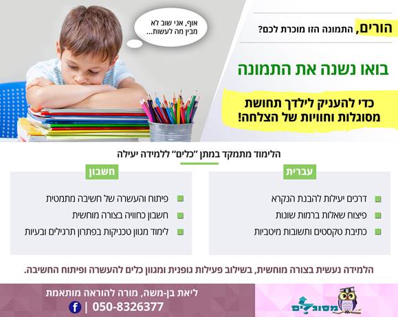 בנוסף ניתנים שיעורים פרטיים בעברית וחשבון לילדי בית ספר יסודי.