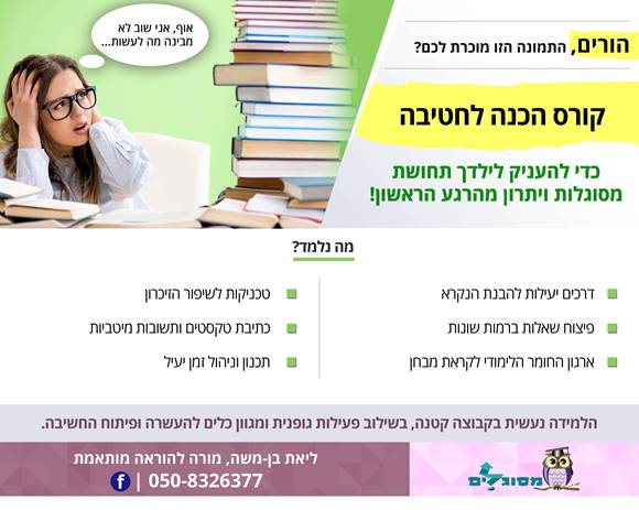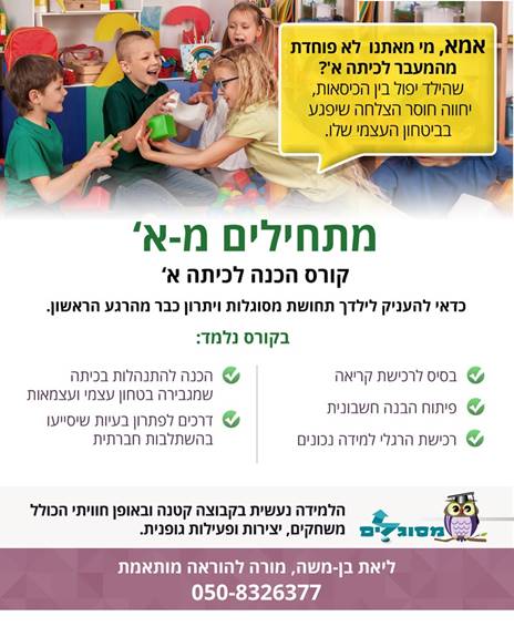 מתחילים להתארגן לשנה הבאה. 2 קורסים נפתחים "הכנה לחטיבה" ו"מוכנות לכיתה א'",