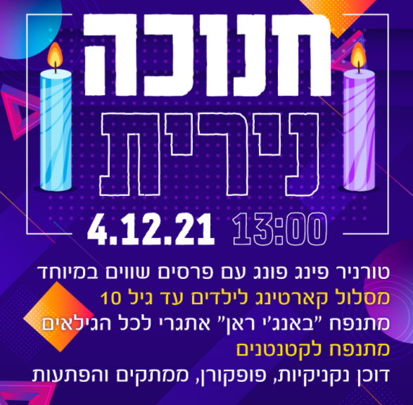 ביום שבת הבא, 4.12.21, משעה 13:30-17:00, יתקיים הפנינג חנוכה בנירית, וכולכם מוזמנים❣️❣️❣️.