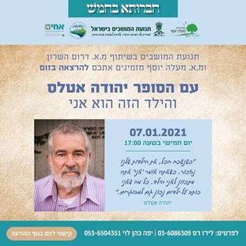 7.1.2021 בשעה 17:00 להרצאת זום עם הסופר יהודה אטלס