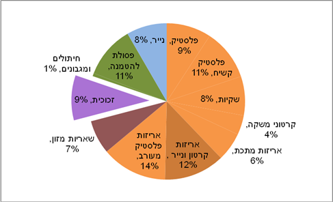 · 13% - נייר וזכוכית למחזור- אותם צריך לזרוק למיכלי הנייר והזכוכית