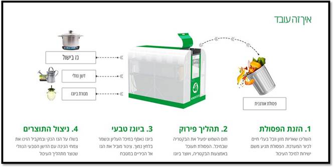 המערכת הופכת את שאריות האוכל לגז בישול ודשן: